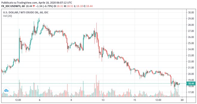 Se invece i prezzi del petrolio WTI dovessero scendere al di sotto del nuovo minimo a 17,42 dollari, ce la possibilità di scendere su livelli psicologicamente significativi come a 15 dollari.