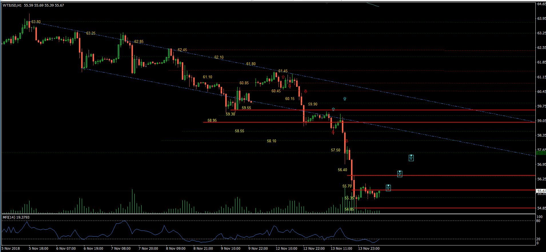 Qui di seguito sono evidenziati i livelli operativi (supporto e resistenza) nel grafico del petrolio a 60 minuti.