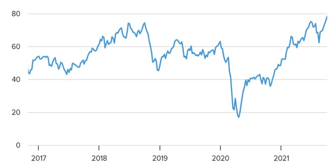 I futures sul greggio WTI, il benchmark petrolifero degli Stati Uniti, hanno superato gli 80 dollari al barile per la prima volta da novembre 2014 poiché la domanda è in ripresa mentre l’offerta rimane limitata.