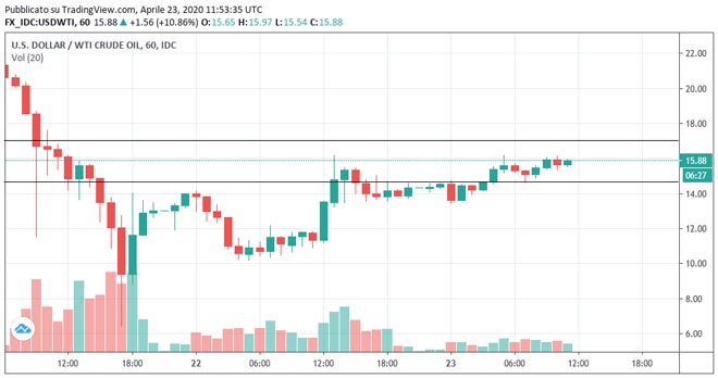 Il prezzo del petrolio sta crescendo per la seconda giornata consecutiva; nel momento della scrittura il rialzo in percentuale su base giornaliera superiore al 13% mentre i prezzi hanno raggiunto i 16,10 dollari.