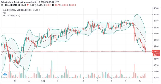Dopo aver raggiunto i 41 dollari ad inizio settimana, i venditori sono tornati all'attacco, soprattutto con l'aumento dei rischi di una seconda ondata di coronavirus. L'aumento record di casi di virus attraverso le statistiche statunitensi e blocchi localizzati nella maggior parte degli hotspot globali hanno frenato le speranze di una più rapida speranza di rimbalzo economico.