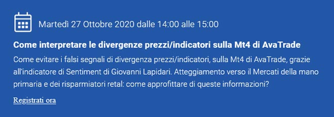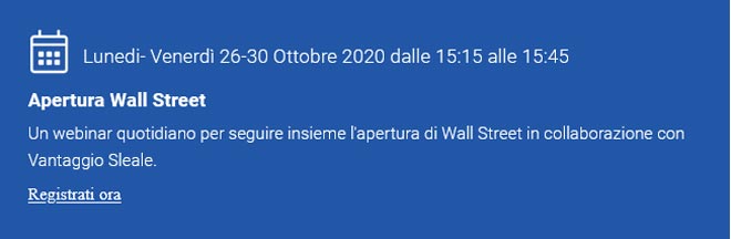 Ti ricordo inoltre che per tutta la settimana ci saranno webinar quotidiani sull'apertura di Wall Street e l'analisi dei mercati in tempo reale. L'iscrizione è gratuita a questo LINK: