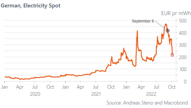 I prezzi europei dell'energia e del gas sono crollati nelle ultime settimane come reazione alle mosse dei governi per arginare una crisi che minaccia di far precipitare l'intera area dell'euro in una recessione.