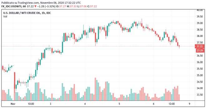 Il prezzo del petrolio crolla nuovamente spinto da uno scenario Covid in peggioramento e dall’incertezza delle elezioni presidenziali USA. Nel momento della scrittura il prezzo del petrolio WTI è in calo del 4,20% a 37,14 dollari al barile.