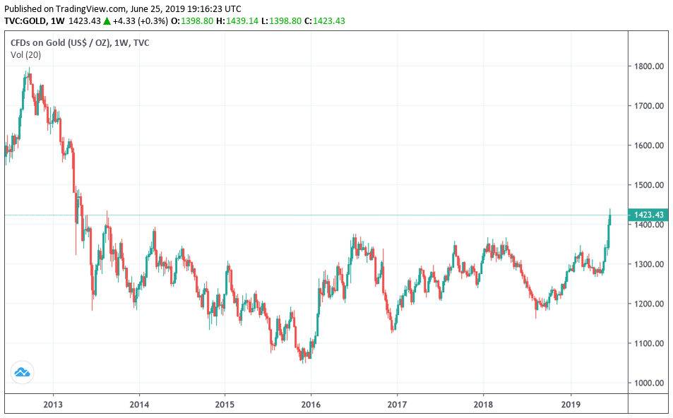 L’oro sta raggiungendo nuovi massimi in quanto la domanda di lingotti sta aumentando a causa delle crescenti tensioni tra Stati Uniti e Iran, mentre i mercati stanno ancora scommettendo su una Fed accomodante nei prossimi mesi.