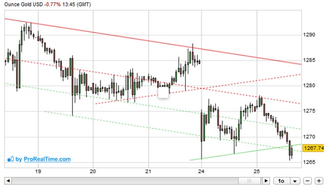 Se il prezzo dell’oro dovesse continuare a scendere rompendo il supporto a 1.265 dollari, i prezzi potrebbero raggiungere il prossimo supporto a 1.260 dollari e in caso di ulteriore rottura, il trend al ribasso continuerà verso 1.255 dollari l’oncia.