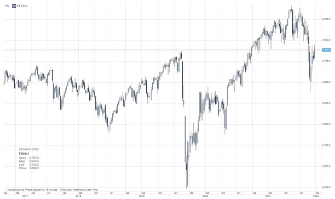In questo contesto le azioni hanno accelerato mentre il mercato delle materie prime ha inizialmente ritracciato ma quasi subito petrolio e gas naturale hanno inviato il chiaro segnale che non vi è alcuna svolta. Nei colloqui di pace non c'è stata la tanto attesa svolta: Putin non riesce a chiudere un accordo per lui soddisfacente da permettergli di ottenere una vittoria o di conquistare la sua popolazione.