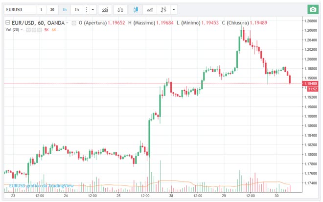 Il cambio euro/dollaro nel momento in cui scriviamo si trova a 1,1954 in ribasso dello 0,12%.
