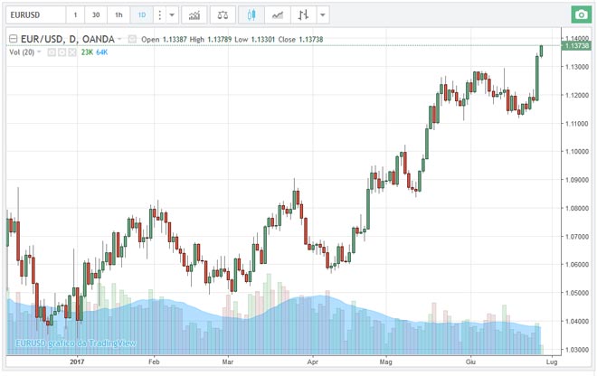 Il cambio euro/dollaro nel momento in cui scriviamo si trova a 1,13738 in rialzo dello 0,38%.