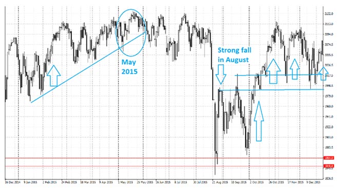 Nel 2015, il mercato ha subito ribassi significativi solo per un paio di giorni, dopodiché S&P 500 ha registrato i prezzi massimi record e il mese nel suo complesso è stato chiuso in modo neutrale (vedi img. 4). Un calo davvero notevole del mercato è stato provocato molto più tardi, in una delle settimane di agosto, dai movimenti al ribasso delle borse cinesi.