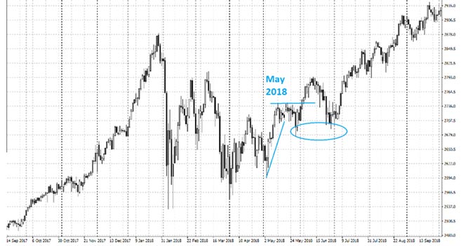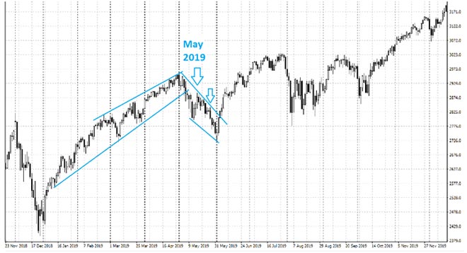A maggio 2019, per la gioia di tutti gli “orsi” e degli aderenti alla teoria del “vendere a maggio”, il movimento correttivo al ribasso è finalmente avvenuto ed è durato per quasi tutto il mese. È stata una scivolata di 200 punti per