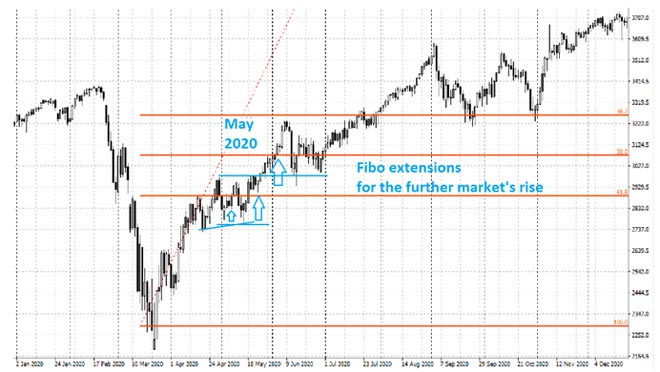 Arriviamo infine al 2020, l'anno della pandemia che la storia non dimenticherà tanto facilmente. Non ci sono stati veri accenni di un ulteriore calo dei prezzi a maggio, contrariamente alle voci di un presunto “secondo minimo” del mercato a causa di nuove ondate del virus (vedi img. 9). Al contrario, ogni piccola flessione dei prezzi è stata accompagnata da acquisti immediati nella forte speranza di una successiva graduale ripresa economica, così valuta la situazione Giancarlo della Pietà, l’analista finanziario di TeleTrade. Il crollo delle quotazioni, senza precedenti nei mesi di febbraio e marzo, non si è più ripetuto a maggio o nel periodo estivo.