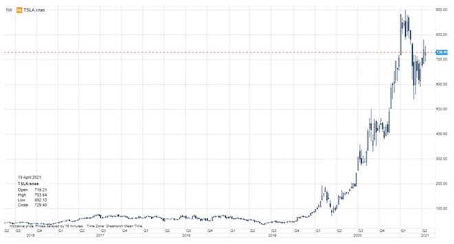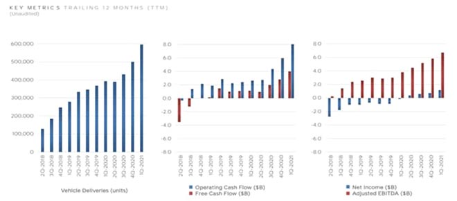 Esaminando i guadagni del Q1 di Tesla, una delle aziende più amate e odiate al mondo, mostrano un fatturato di 10,4 miliardi di dollari in linea con le stime e un EPS rettificato di 0,93 dollari contro 0,80 dollari. L'azienda dice che si aspetta di realizzare una crescita del 50% nella consegna di veicoli nel 2021; mentre il consensus si aspetta un aumento delle entrate del 57% a/a nel 2021. Questo obiettivo di entrate potrebbe essere difficile se le consegne sono in crescita del 50%, dato che il prezzo medio di vendita (ASP) è diminuito del 13% a/a, con un a forte pressione in diversi mercati, particolarmente in Cina. Il free cash flow è di 293 milioni di dollari rispetto alla stima di $-83mn. La società ha iniziato la produzione della nuova Model S e si aspetta che la produzione abbia inizio nella sua nuova Gigafactory di Berlino nel 2021. Anche il business solare è aumentato nel quadrimestre con un totale di 92 MW installati nel Q1 2021 rispetto a 86 MW nel Q4 2020.