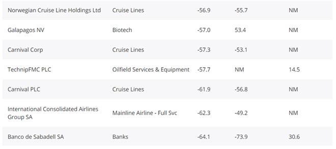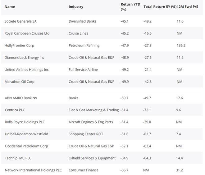 Le 20 azioni, statunitensi ed europee, con le peggiori performance del 2020
