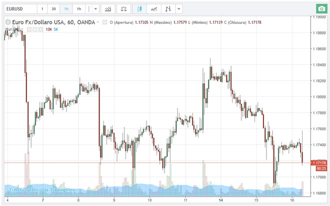 Il cambio euro/dollaro nel momento in cui scriviamo si trova a 1,1703 in ribasso dello 0,25%.