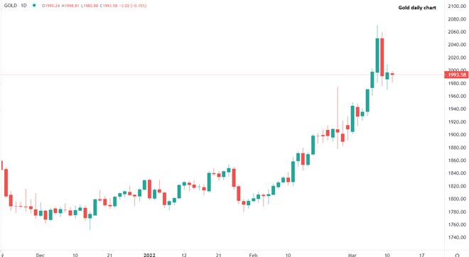 Il sentiment dei mercati rimane sotto l'influenza della guerra in Ucraina. L'oro è stabile a ridosso dei 2.000 dollari l’oncia, mentre rimangono elevate le pressioni sull'euro anche in seguito alle decisioni della BCE di inasprire le politiche monetarie per contrastare le pressioni inflazionistiche nel vecchio continente.