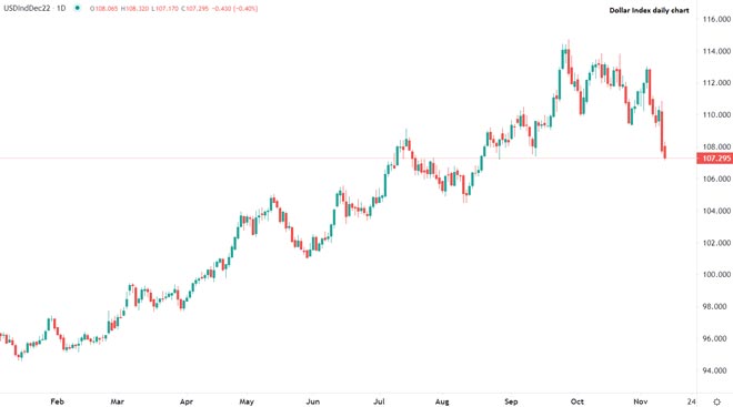 Il rallentamento dell'inflazione a ottobre alimenta le speranze degli investitori che la Federal Reserve ora riconsideri il ritmo di inasprimento della sua politica monetaria. Con l'inflazione finalmente sotto controllo, molti ora si aspettano una Fed meno aggressiva a dicembre, con molti che scommettono su un aumento del tasso di 50 punti base, invece dei 75 punti base precedentemente previsti.