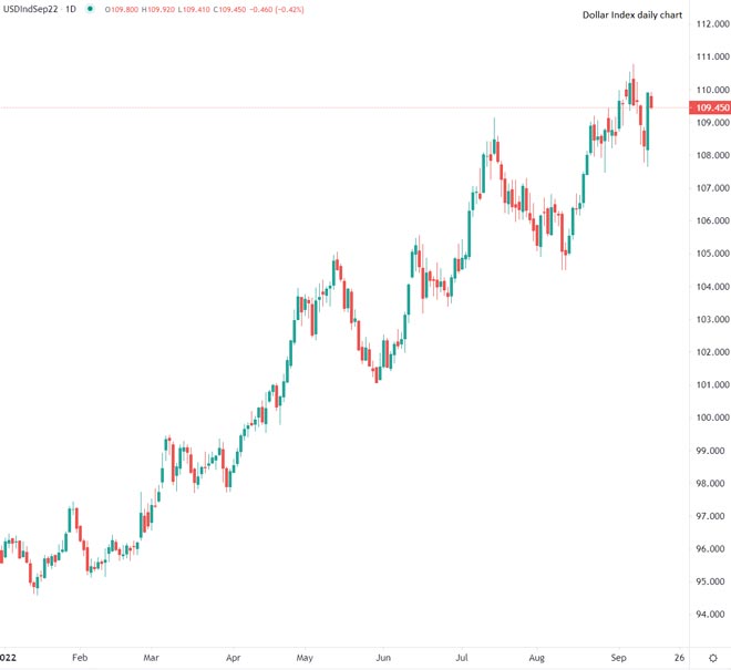 Il dollaro USA viene scambiato vicino al livello raggiunto durante la sessione precedente, quando ha guadagnato oltre l'1,5% sostenuto delle aspettative aggiornate sul ritmo dell'inasprimento della politica monetaria della Fed.