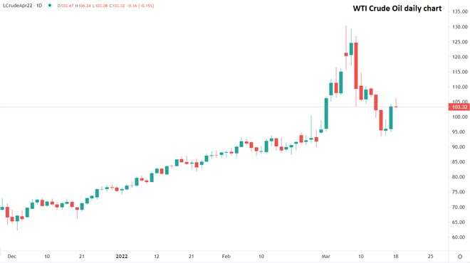 ieri il prezzo del barile ha guadagnato quasi l'8%, salendo ancora una volta sopra i 100 dollari dopo la rottura dei colloqui tra Russia e Ucraina, che ha in parte dissipato la speranza che gli sforzi diplomatici potessero portare a una de-escalation del conflitto.
