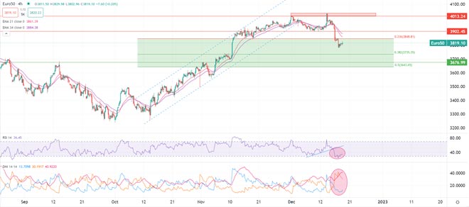 L'indice STOXX-50 viene scambiato sopra i 3.800 punti, ma ancora al di sotto della sua prima resistenza disponibile a 3.850,0 punti. La pressione ribassista continua a guidare il mercato nonostante la correzione odierna, e il prossimo supporto rimane oltre 3.735 punti, 3.676 punti e 3.645 punti per estensione.