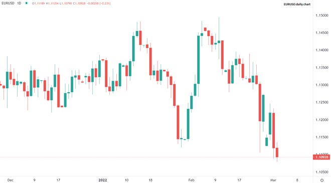 Il conflitto in Ucraina, le sanzioni in atto contro la Russia e l'escalation dei prezzi dell'energia stanno generando apprensione di fronte al calo delle prospettive di una ripresa economica regolare in Europa. L'Euro è, tra tutte le principali valute, forse quella più esposta al conflitto nell'Europa orientale, situazione che potrebbe innescare un'ulteriore debolezza della moneta unica.