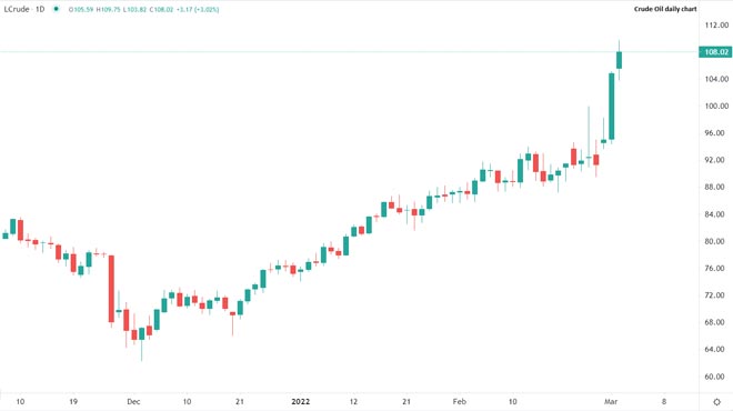 Una situazione che vede il prezzo dell'oro e il dollaro Usa salire, mentre si guarda con attenzione il mercato del petrolio, con i prezzi del greggio WTI che hanno superato la soglia degli 111 dollari al barile per la prima volta dal 2013.