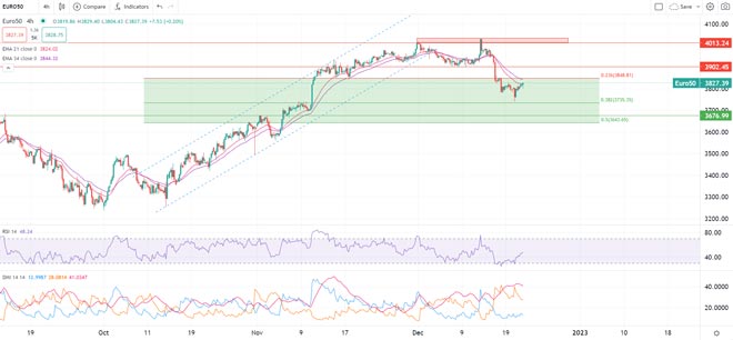 Anche se l'azione rialzista dei prezzi di ieri è stata confermata finora oggi, è probabile che gli investitori rimangano cautamente ottimisti questa settimana. Finché non verrà superata alcuna resistenza significativa (3.850 punti / 3.900 punti), l'attuale rimbalzo rimarrà una ‘correzione rialzista‘ innescata da operazioni di copertura allo scoperto prima delle vacanze di Natale, quando la liquidità del mercato tende a diminuire, piuttosto che una chiara tendenza inversione. Inoltre, la recente instabilità rilevata nei mercati obbligazionari a seguito dello spostamento a sorpresa del Giappone nella sua banda di scambio di rendimento non offre un ambiente favorevole alla propensione al rischio.