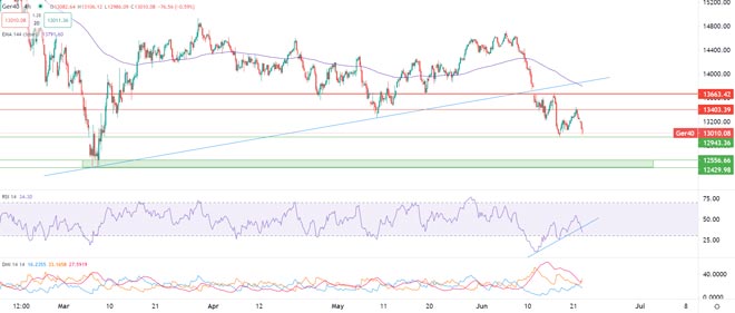 L'indice DAX-30 porta una delle peggiori performance europee finora, guidata al ribasso da materiali e azioni Tech. Il mercato è ora scambiato vicino al livello di 13.000,0 punti, l'ultima area di supporto prima della zona 12.555/12.430.