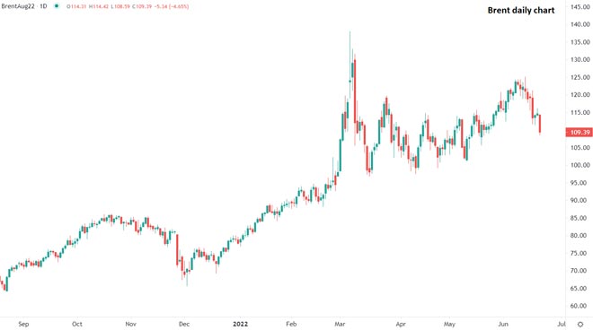 I prezzi del petrolio Brent sono scesi sotto la soglia dei 109 dollari per la prima volta in un mese, perdendo 6 dollari durante le prime contrattazioni di mercoledì.