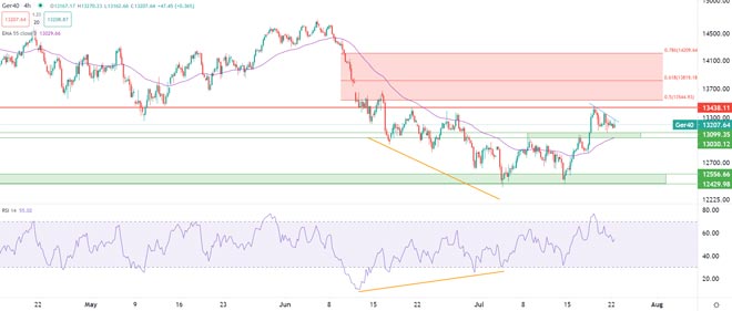 Nel frattempo, l'attuale crisi politica in Italia dopo le dimissioni del premier Mario Draghi dopo che i due partiti chiave hanno ritirato il loro sostegno al governo, aggiunge incertezza. Tuttavia, nonostante l'andamento ribassista dei prezzi di oggi, i mercati azionari continuano a mantenere i migliori guadagni da un mese a questa parte, mentre gli investitori cercano di valutare se questo si rivelerà una correzione temporanea o una vera inversione di tendenza.