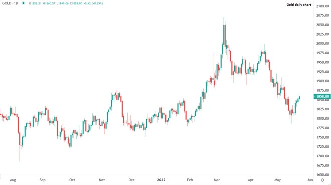 Il metallo prezioso sta beneficiando del calo dei rendimenti dei Treasury insieme a una certa debolezza del dollaro, con la quale ha una correlazione di prezzo invertita. La stabilizzazione dei rendimenti dei Treasury e del dollaro, che si sono ritirati dai picchi raggiunti a metà maggio, si è verificata in quanto i mercati sembrano aver scontato l'inclinazione da falco della Fed e la comparsa di alcuni raggi di speranza per una prospettiva economica globale più brillante; il previsto allentamento dei blocchi in tutta la Cina e una dichiarazione sorprendente del presidente Biden, che allude a una potenziale riduzione dei dazi applicati alle importazioni cinesi, ha sollevato l'umore nei mercati e ha creato spazio per ulteriori guadagni di oro, poiché la domanda di dollari diminuisce.