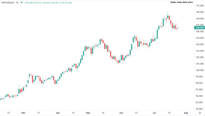 Il dollaro USA viene scambiato piatto in questo inizio si settimana. Dopo essere sceso di oltre l'1% nei sette giorni precedenti, l'indice del dollaro sta iniziando la settimana senza movimenti significativi, confermando le aspettative stabili degli investitori su un aumento del tasso di 75 punti base da parte della Federal Reserve alla fine di questa settimana.