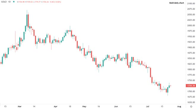 Con la stabilizzazione della domanda per il dollaro e le crescenti preoccupazioni per la prospettiva di un rallentamento economico che costringe le banche centrali a ripensare all'inasprimento delle politiche monetarie, l'oro sta trovando un sostegno, anche in seguito alla maggiore chiarezza dopo il discorso di mercoledì di Jerome Powell, che dovrebbe fornire indizi su quella che sarà la posizione della Fed nelle prossime settimane.