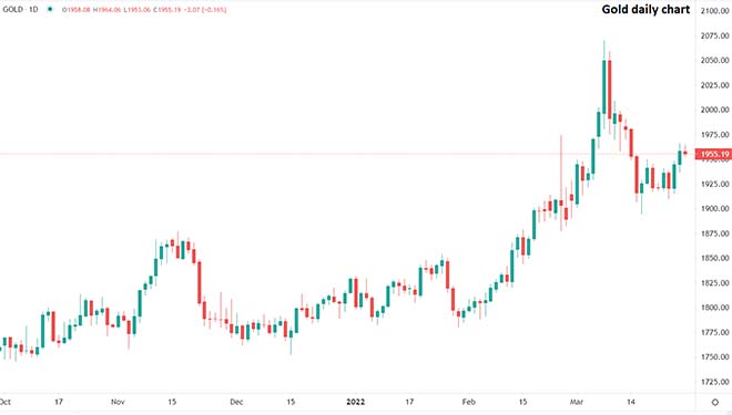 Man mano che la Federal Reserve diventa sempre più determinata a tenere a bada l'inflazione, i rendimenti dei titoli di stato aumentano e il dollaro guadagna terreno su altre principali valute, gravando sul prezzo dell'oro. Tuttavia, il conflitto in Ucraina e il rischio geopolitico che ne deriva continuano ad agire da contrappeso, aumentando la domanda per i beni rifugi ed offrendo supporto al metallo prezioso. Intrappolato tra questi due vettori opposti, è probabile che almeno a breve termine l'oro rimanga piatto.