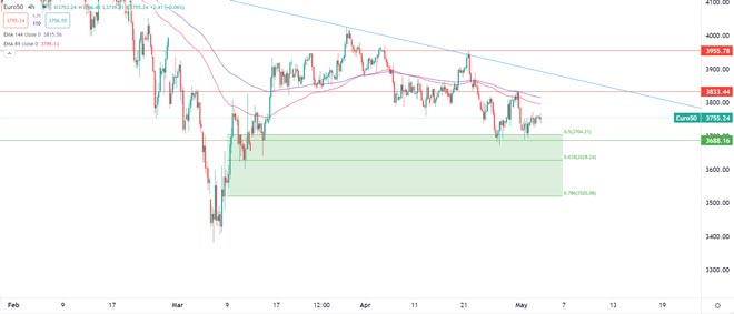 L'indice STOXX-50 rimane finora piatto, scambiato a circa 3.750 punti, nel mezzo di un'ampia gamma di 150 punti.