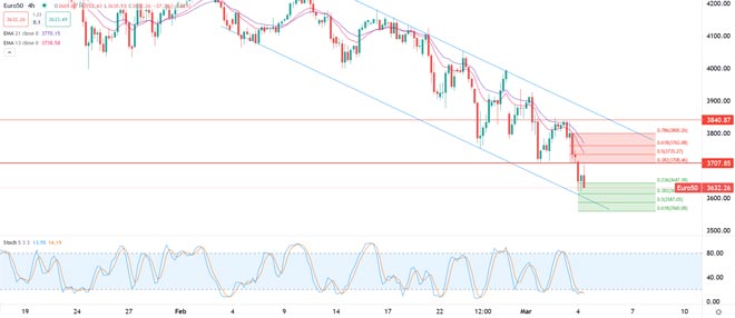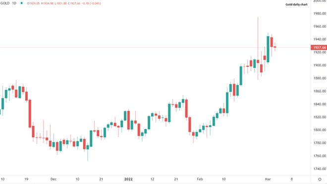 La domanda per i rifugi più sicuri è in aumento, soprattutto perché gli investitori si preparano ad un aumento dei prezzi delle materie prime, un'inflazione più elevata ed una crescita economica più lenta. Detto questo, gli operatori del mercato potrebbero rimanere pazienti in attesa dei dati macro negli Stati Uniti che oggi includono i libri paga non agricoli di febbraio, che potrebbero fornire ulteriori indizi sulla reale situazione economica statunitense e sulle prossime mosse monetarie della Federal Reserve, anche se un aumento del tasso di un quarto di punto base questo mese è ora completamente scontato.