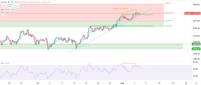 È probabile che l'attenzione degli investitori rimanga sui dati macro oggi con i dati NFP statunitensi per luglio, dove è ampiamente previsto un calo da 372.000 a 250.000 creazione di posti di lavoro.