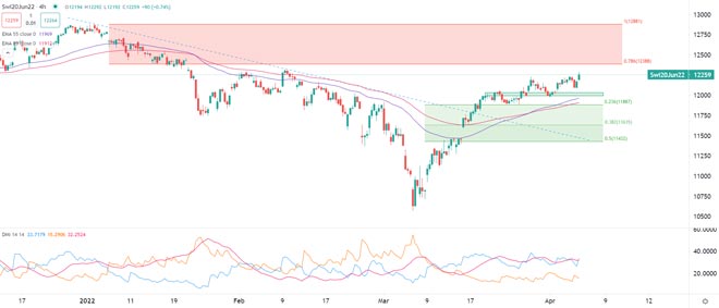 I settori automobilistico e sanitario sono in vetta alla classifica delle migliori prestazioni, soprattutto le azioni svizzere come Roche Holdings AG ed Alcon Inc. L'SMI-20 registra nuovi massimi, con i prezzi sempre più vicini alla resistenza di 12.385 punti.
