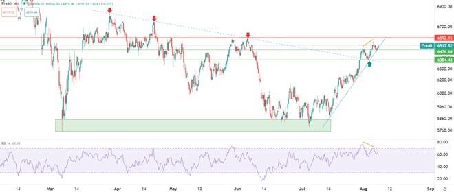I titoli tecnologici ed energetici sono stati tra i migliori risultati dopo la campanella di apertura poiché gli investitori, spinti da una forte stagione degli utili e dalla prospettiva di colloqui nucleari positivi con l'Iran in arrivo oggi, hanno continuato a spingere i benchmark al rialzo. Tuttavia, questo ottimismo sembra svanire leggermente poiché le tendenze rialziste sulla maggior parte degli indici hanno mostrato segni di rallentamento mentre ci avviciniamo ai livelli di resistenza chiave. Questo rallentamento può essere spiegato anche sul fronte macro, poiché è probabile che gli investitori prezzino condizioni monetarie più restrittive causate da un tasso di rifinanziamento molto più elevato dopo il solido rapporto NFP statunitense di venerdì scorso. Mentre un aumento del tasso di 75 pb è ora sul tavolo delle aspettative per la prossima riunione del FOMC di settembre, gli investitori terranno d'occhio i dati sull'inflazione statunitense di questa settimana e valuteranno se c'è già un picco nella pressione sui prezzi.