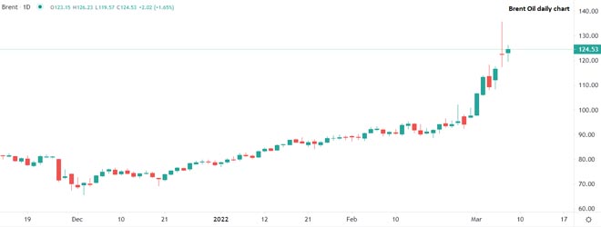 I prezzi del petrolio Brent si sono avvicinati a 128 dollari al barile durante gli scambi iniziali di martedì, a causa delle crescenti preoccupazioni per l'interruzione delle esportazioni petrolifere dalla Russia.