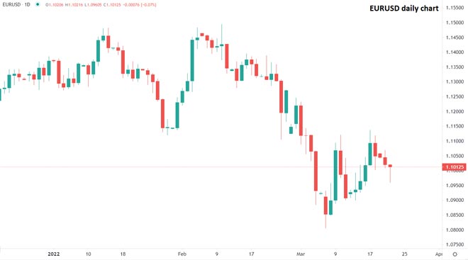 L'appetito degli investitori per gli asset più rischiosi ha ricevuto un'altra nuova spinta in seguito all'atteggiamento da falco di Jerome Powell ieri sera, poiché molti trader hanno accolto con favore la forte volontà della Fed di combattere l'inflazione. Tuttavia, d'altra parte, l'appiattimento delle curve dei rendimenti, che suggerisce crescenti timori di un rallentamento economico a lungo termine, associato alla mancanza di una chiara svolta nei colloqui diplomatici Ucraina-Russia a breve termine, potrebbe essere visto come un segno la volatilità del mercato e le forti oscillazioni dei prezzi potrebbero non essere ancora finite.