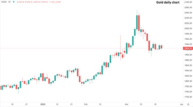 Tuttavia, il lato negativo creato dalla forza del dollaro è limitato dalle preoccupazioni per il conflitto in corso in Ucraina, con l'intelligence statunitense che segnala la possibilità di un'escalation che potrebbe comportare l'uso di armi chimiche da parte della Russia; I prezzi dell'oro tendono ad aumentare quando la tensione geopolitica aumenta, quindi le perdite rimangono tutt'ora limitate dalla guerra in corso.