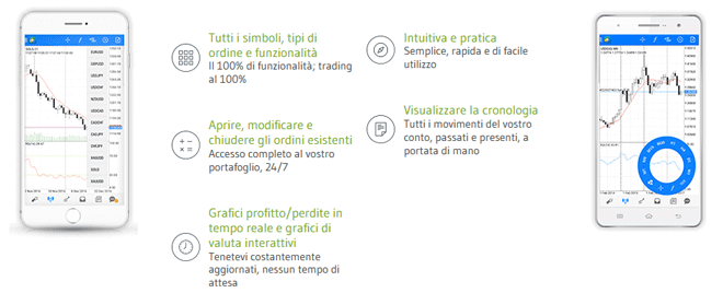 - Gestire il trading e l’account in modo semplice – Scaricando la piattaforma di trading mobile, i clienti potranno gestire i propri account, monitorare i propri investimenti ed effettuare trading. Si potrà controllare tutto questo tramite smartphone, tablet, o iPad. Progettata per essere compatibile con tutti i più comuni dispositivi mobili, la piattaforma di trading mobile è rivolta al futuro portando con sé le più moderne funzioni sul tuo dispositivo mobile in un formato ancora più user friendly.