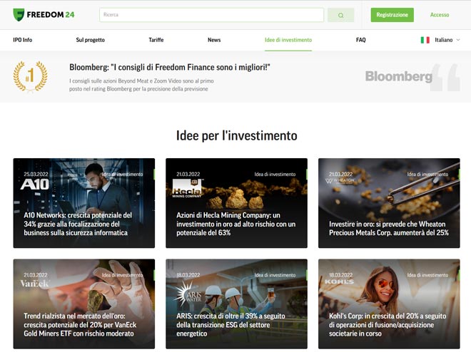 Visita il sito Freedom24 per accedere ai servizi, aprire un conto demo o conoscere le migliori ‘Idee per di investimento'.