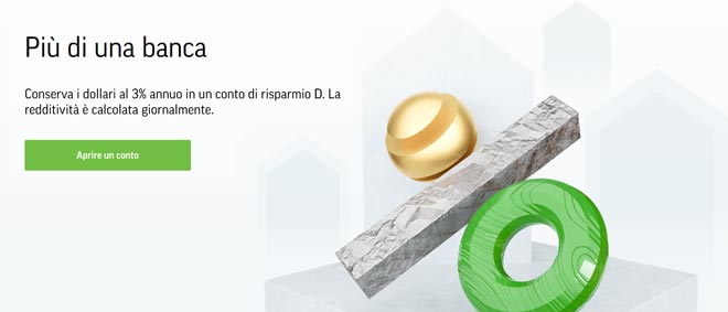 - Conto D (conto di risparmio in USD con un rendimento 3% annuo)