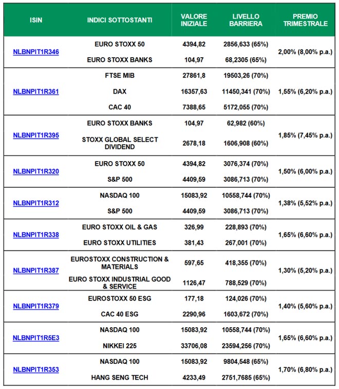 Comunicazione promozionale – Il presente articolo è redatto a fine informativo e non rappresenta in alcun modo sollecito all’investimento in borsa. I certificati sono prodotti complessi e il capitale investito è a rischio. I rendimenti indicati sono lordi, con tassazione fiscale al 26%. L’investitore è anche soggetto al rischio emittente.