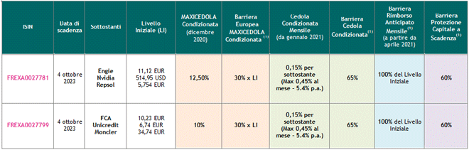 - L’effetto MAXICEDOLA prevede lo stacco di un “Maxi” coupon condizionato a dicembre 2020;