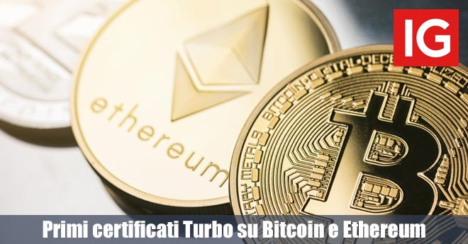 IG Europe (IGE), la divisione europea di IG Group, fintech leader globale nell’innovazione del trading online attiva dal 1974, ha annunciato oggi il lancio su Spectrum dei primi certificati Turbo al mondo su due criptovalute: Bitcoin e Ethereum.