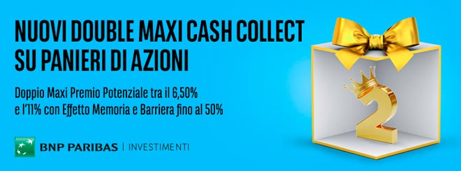 I nuovi certificate Double Maxi Cash Collect di BNP Paribas sono composti da azioni di società europee e americane, prevedono due Maxi premi compresi tra il 6,5% e l’11% e barriere fino al 50% .