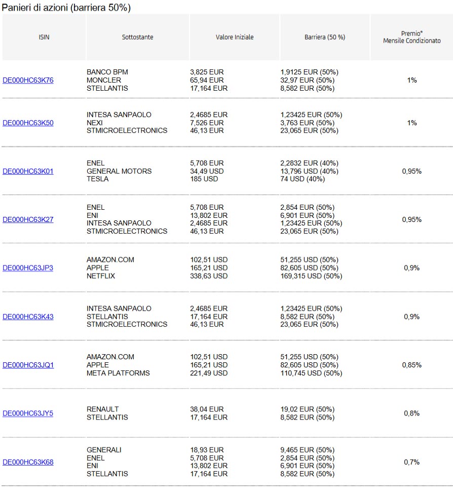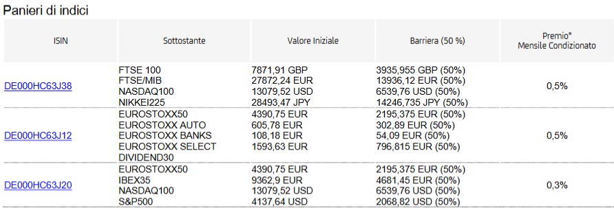Questi prodotti si aggiungono alla lista di prodotti con barriere conservative emessi nelle ultime settimane, a quelli con effetto Airbag ed ai recenti Maxi Cash Collect.